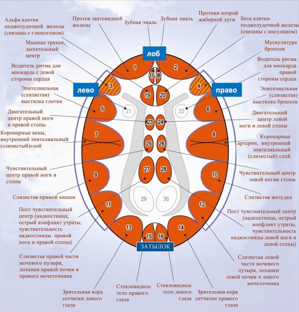 Согласно пониманию Хамера, паническая атака — фаза восстановления территориального конфликта, связанного с «фронтальным нападением». Что-то темное, страшное, черное, смертельно опасное надвигается неумолимо на нас. Оно желает нас уничтожить, сожрать, разорвать на куски, убить с особой жестокостью, развеять на атомы, а память о нас рассеять в космосе. Деваться нам некуда, отступать не получается — позади нас стена, внутрь которой никак не удается залезть. А впереди, прямо пред нами страх и ужас, ужас и страх. Поэтому там где обозначены не существующие «протоки щитовидной железы» или «жаберные дуги», которые у человека есть некоторое время в период эмбрионального развития, надо обозначить зоны панической атаки. Там нет проекций никаких органов, но, по-видимому, находятся особые зоны, связанные с соответствующими двигательными реакциями на смертельную опасность. Если есть опасность смерти прямо перед тобой, то надо бежать без оглядки, бежать как можно быстрее. Для этого и сердце должно биться очень быстро и давление быть высоким и мышцы напряженными, и ничто другое не должно отвлекать человека от главного.